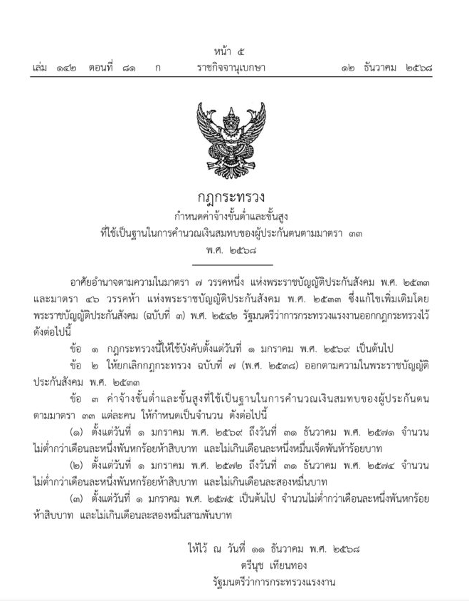 ปรับเพดานค่าจ้างสูงสุด สำหรับคำนวณเงินป ระกันสังคม